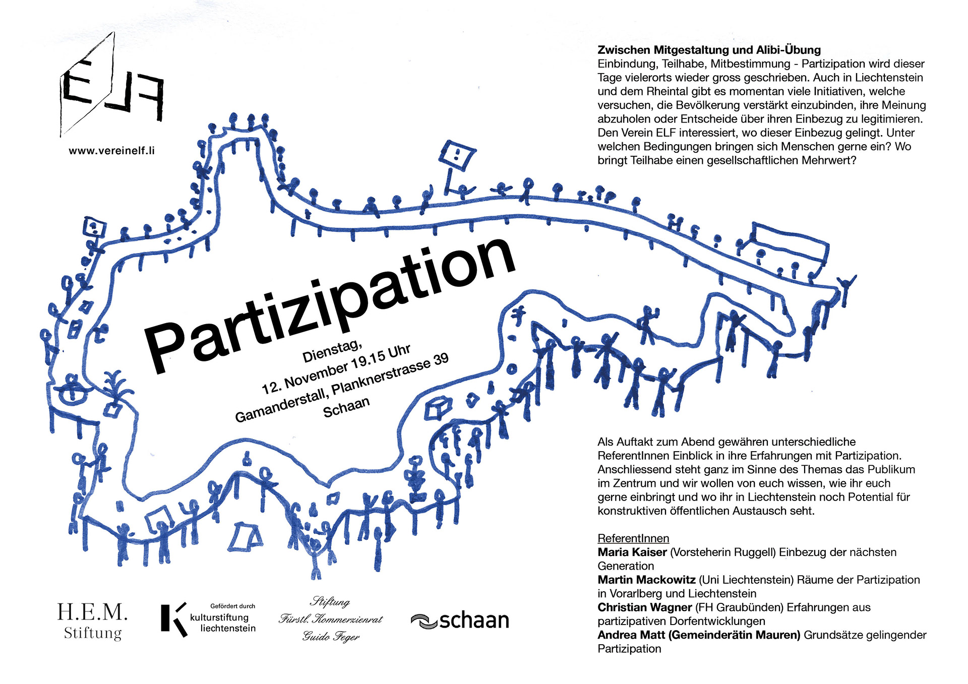 Alle wollen die Öffentlichkeit einbinden, Entscheidungen sollen nur «unter Einbezug des Volkes« getroffen werden, und alle möchten mitentscheiden. Wie unterscheidet sich echte Partizipation von einer Alibiübung zur Legitimation von Entscheidungen? Was für Formate gibt es in Liechtenstein bereits, welche Formate könnte man noch umsetzen? Nach der offiziellen Diskussion im Plenum lädt die Karta-Bar wie immer zum Verweilen und bei Lust und Laune in kleineren Gruppen zum Weiterdiskutieren ein. Als wirksames Mittel gegen das kühle Novemberwetter wird dieses Mal neben Mausis Glühwein DJ Flamingo für den nötigen Schwung sorgen.