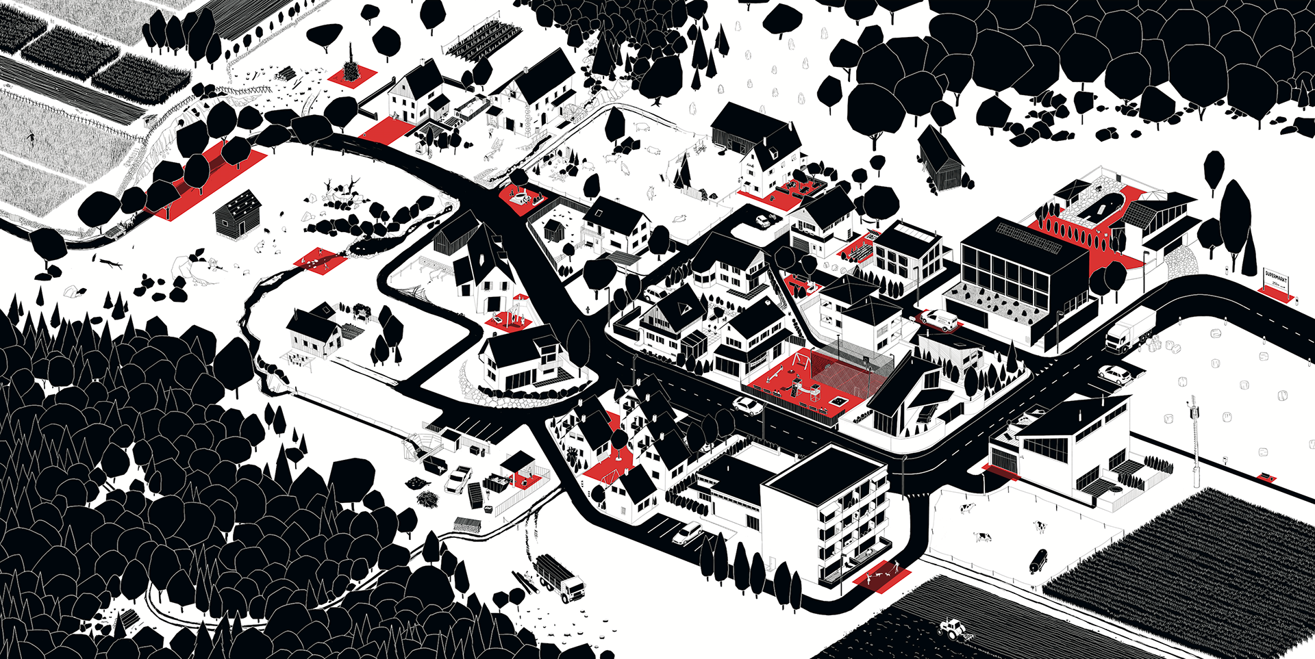Eine Quartierskarte gezeichnet von Roman Beck, basierend auf den Diskussionen während der Veranstaltung